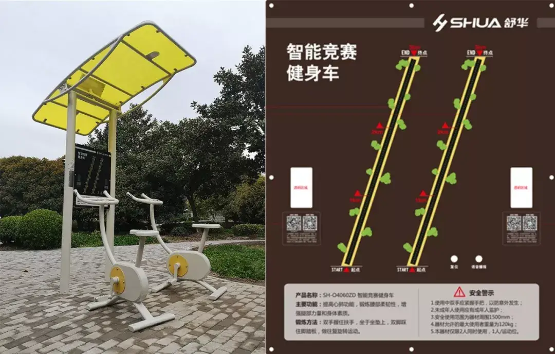依托云计算和大数据,智慧社区健身中心室内外舒华智能健身器材,支持手机扫码查看运动指导视频和运动数据,实现运动数据科学、便捷管理。